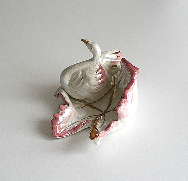 Cygnes "TUTTO SPOSI" reposant sur une feuille.