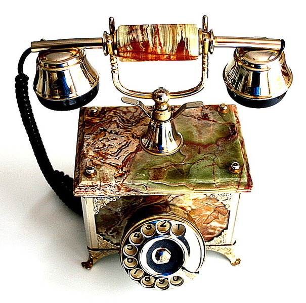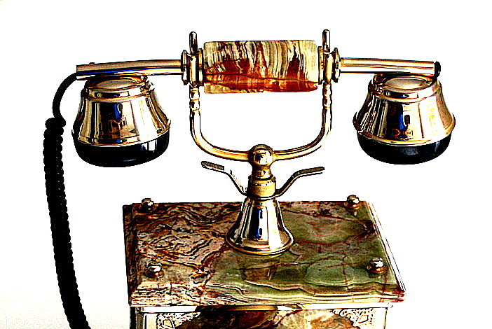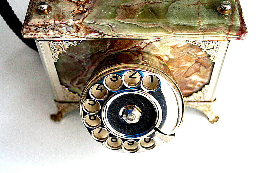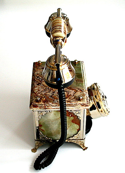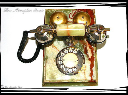 Téléphone en ONYX reposant sur piètement en bronze, en état de