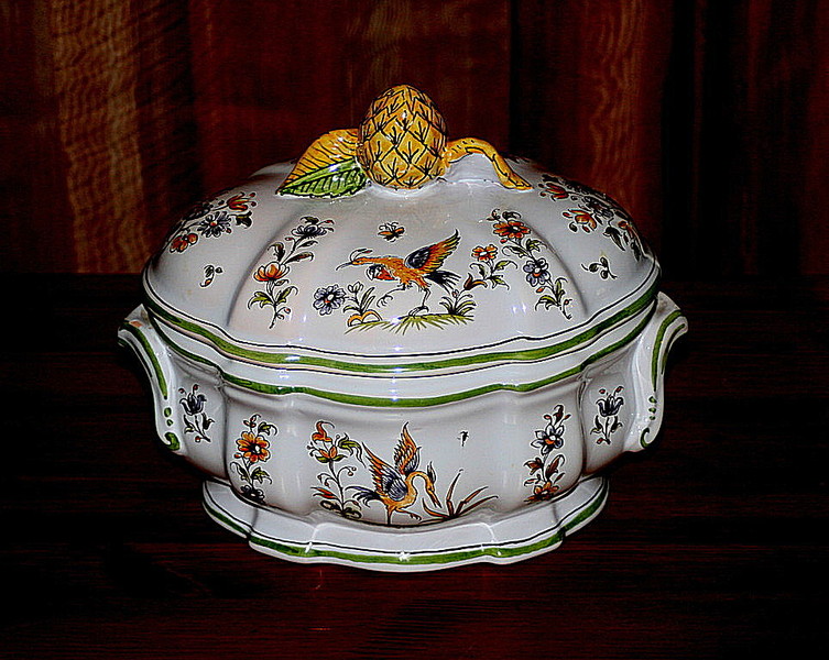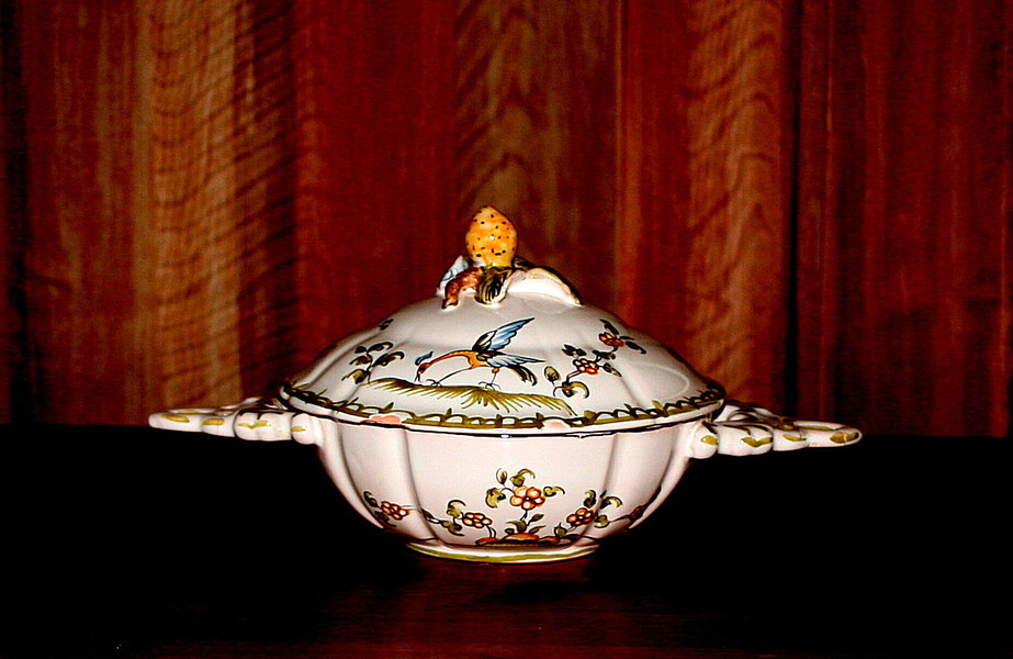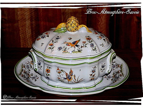 Terrine d'Italie, début XXème peint a la main, deux décors.
