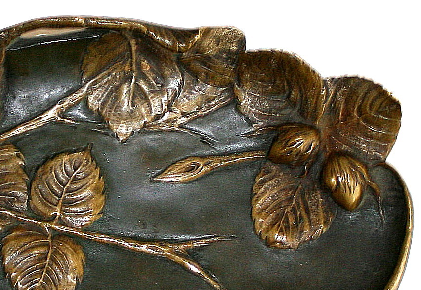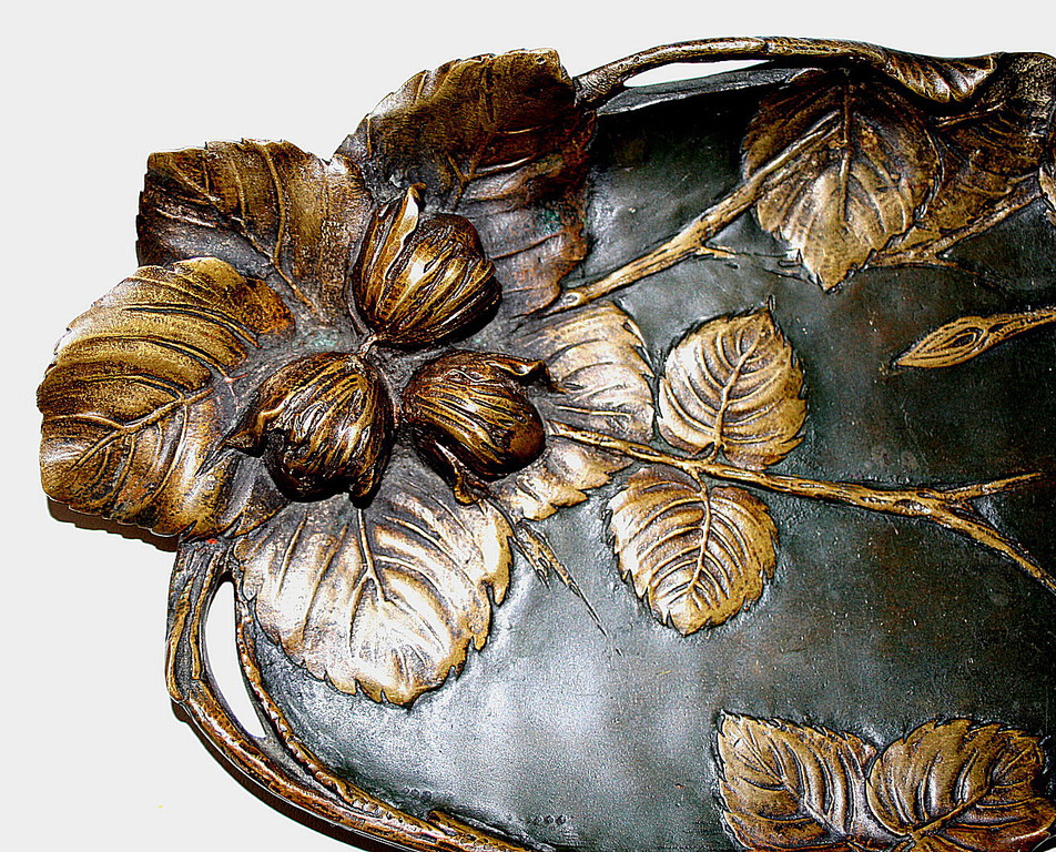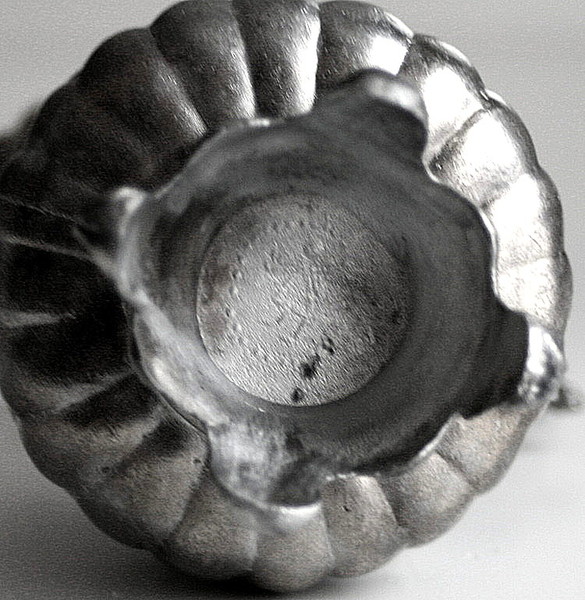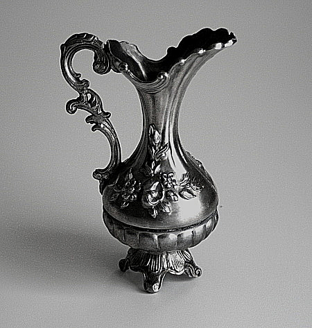 Aiguière en bronze argenté à décor de fleurs, la panse godronnée