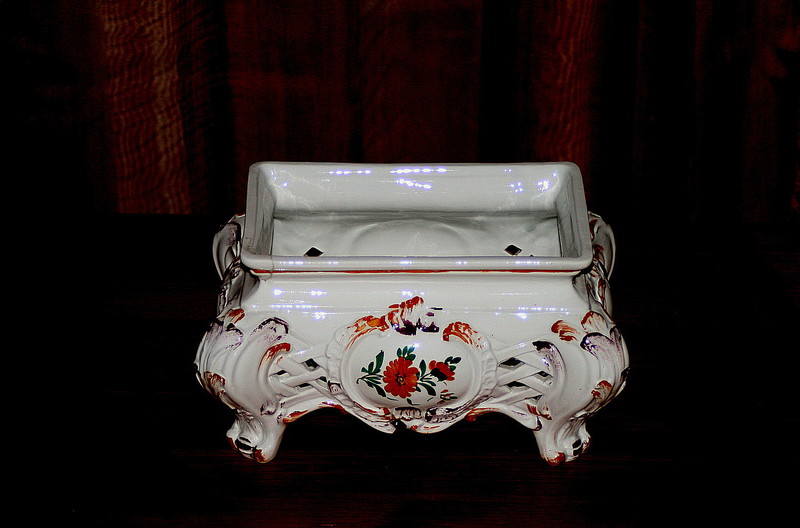 Bouquetière en biscuit du XIXème, signée et numérotée.