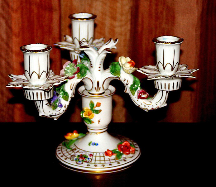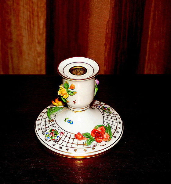 Bougeoir signé en porcelaine Allemande du XIXème.