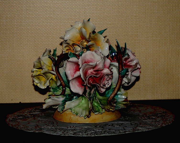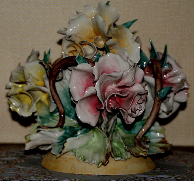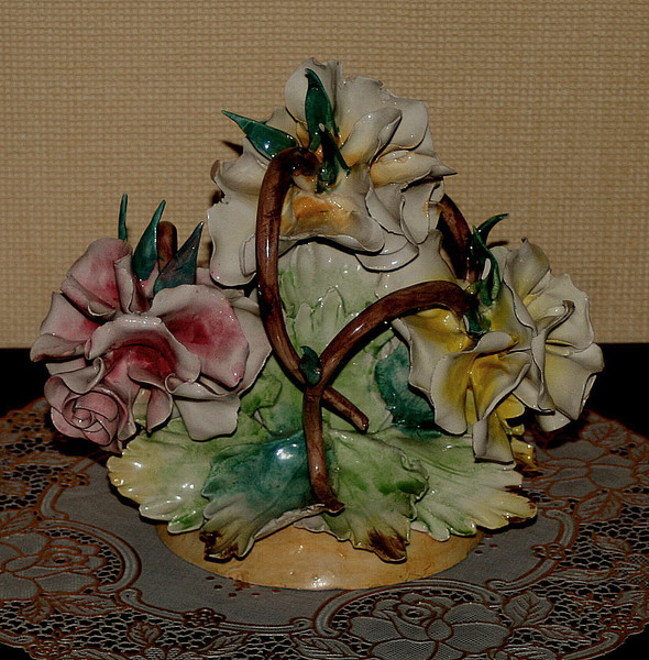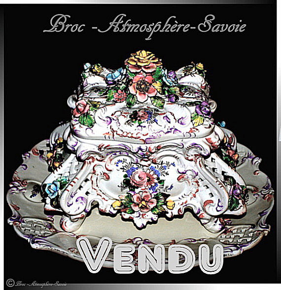 Soliflore couvert d'Italie provenant de la manufacture CAPODIMONTE Fin XIXème début XXème, (barbotine) signée et numérotée.