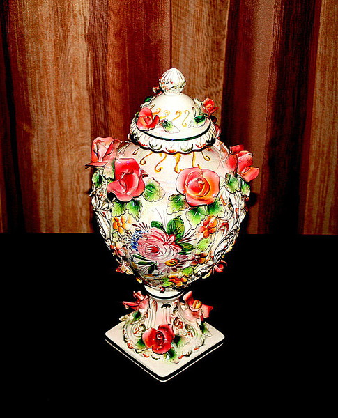 Vase couvert d'Italie CAPODIMONTE. REF 73YM91