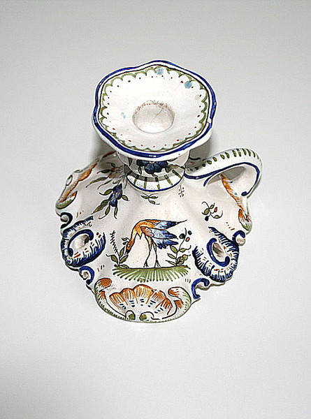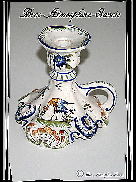 Bougeoir à main en faïence de MOUSTIERS. REF 73YM62