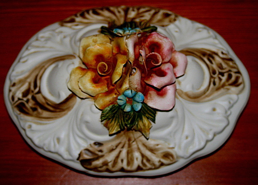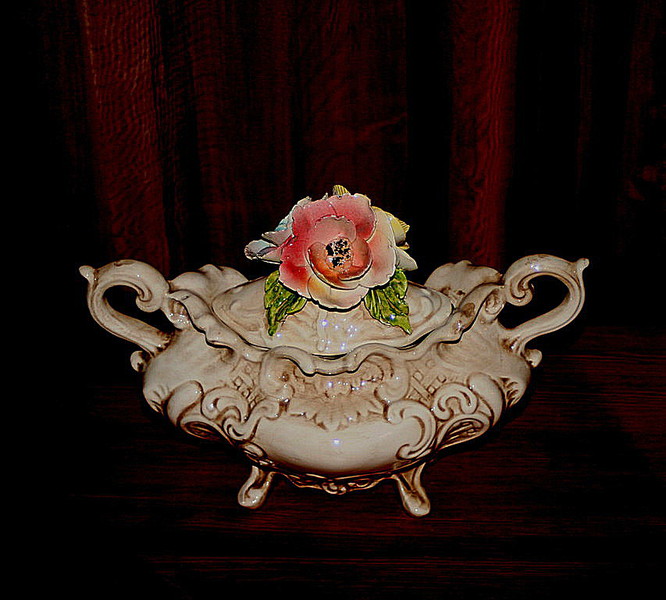 Pot-pourri en porcelaine d'Italie, signé V. BASSANO.