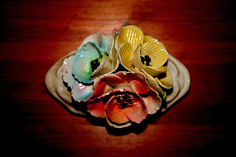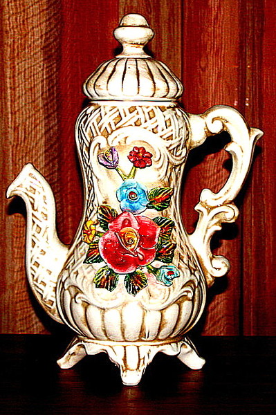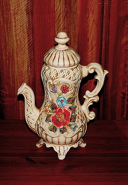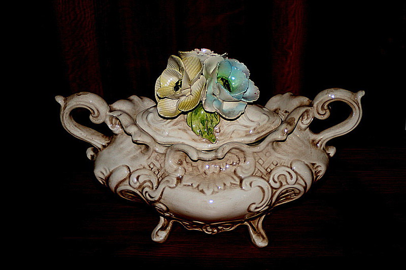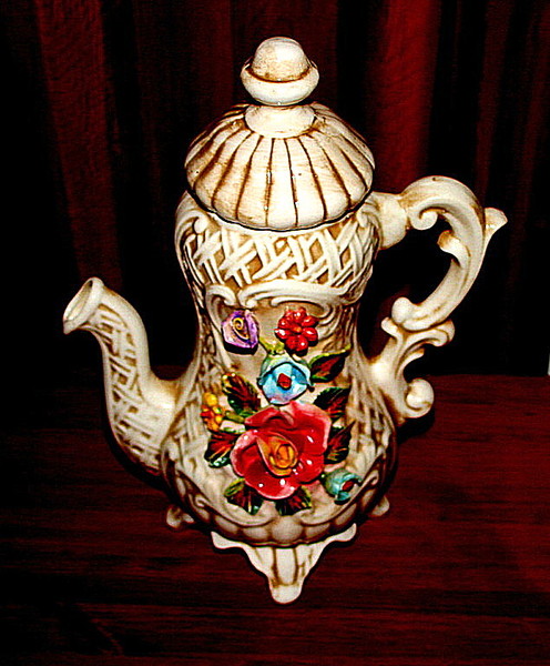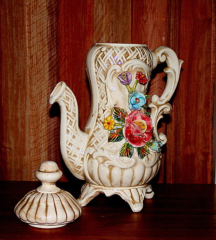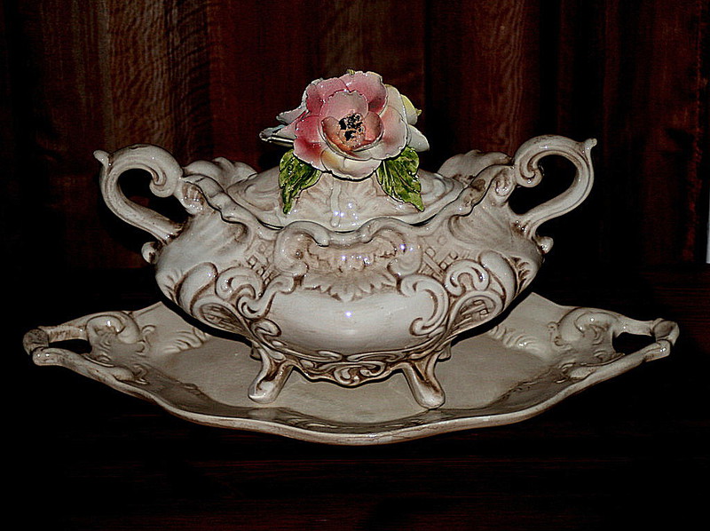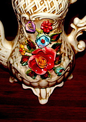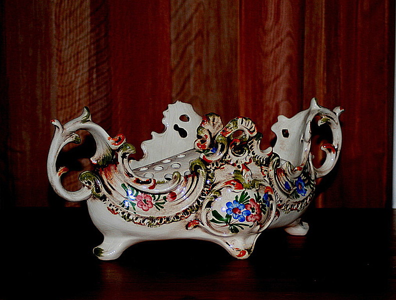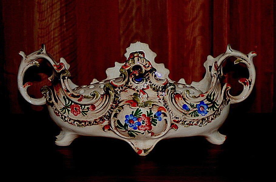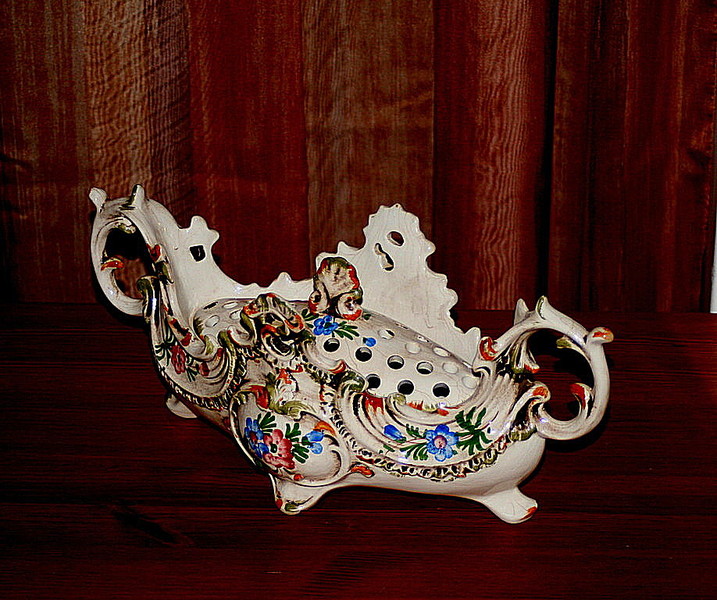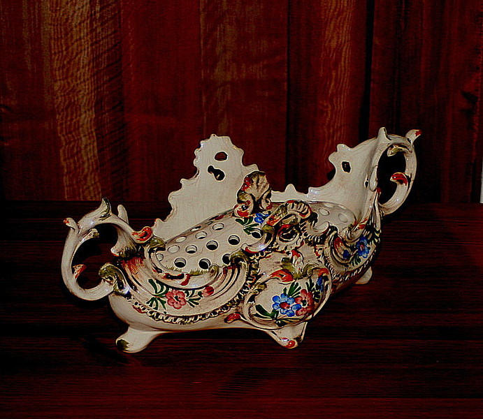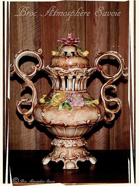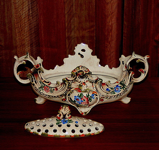 Pot-pourri et son portant, en porcelaine d'Italie.