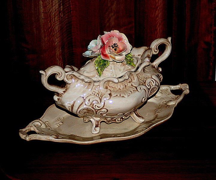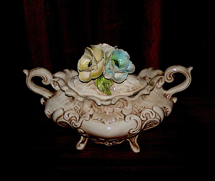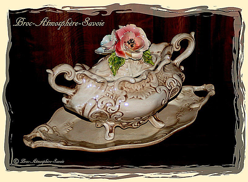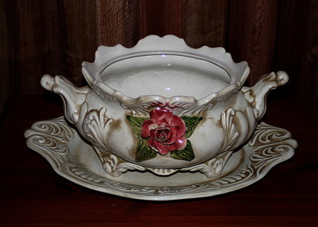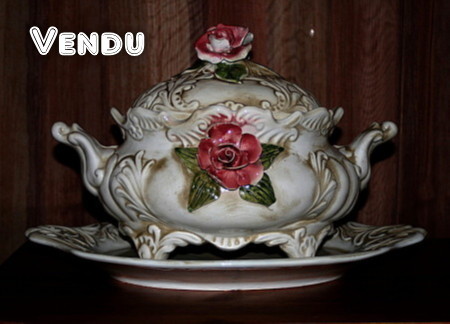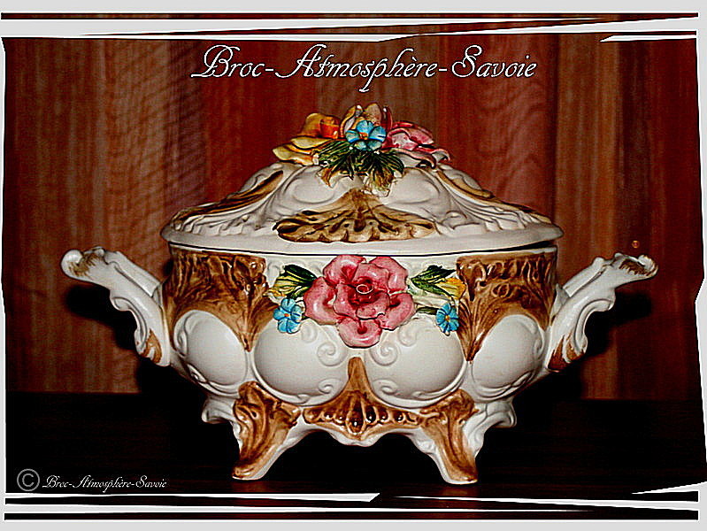 Soupière polychrome et son portant d'ITALIE. REF 73YM69.