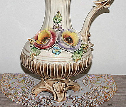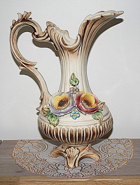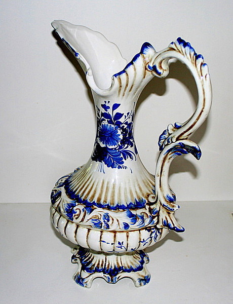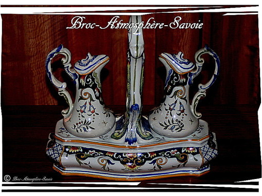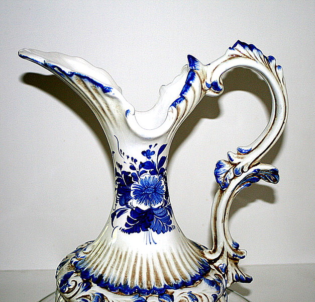 Bel ensemble de toilette fin XIXème / début XXème en faïence du PORTUGAL, numéroté et signé, composé, d'un broc, d'une cuvette au décor de fleurs, peint à la main.