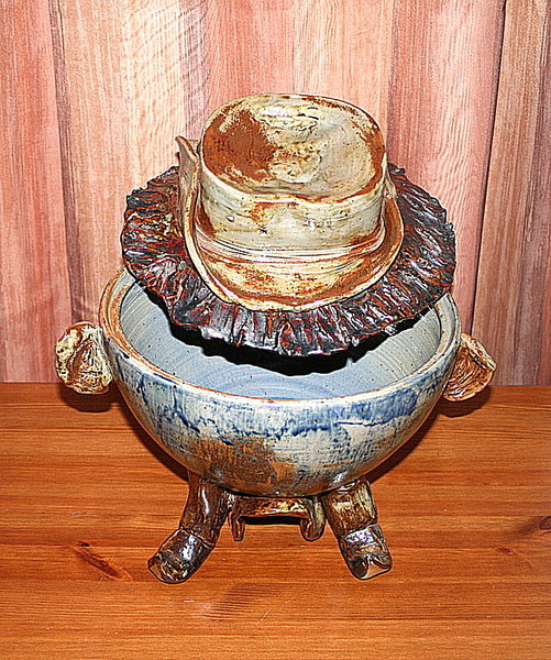 Pot en grès avec couvercle, aucune signature, pièce rare.